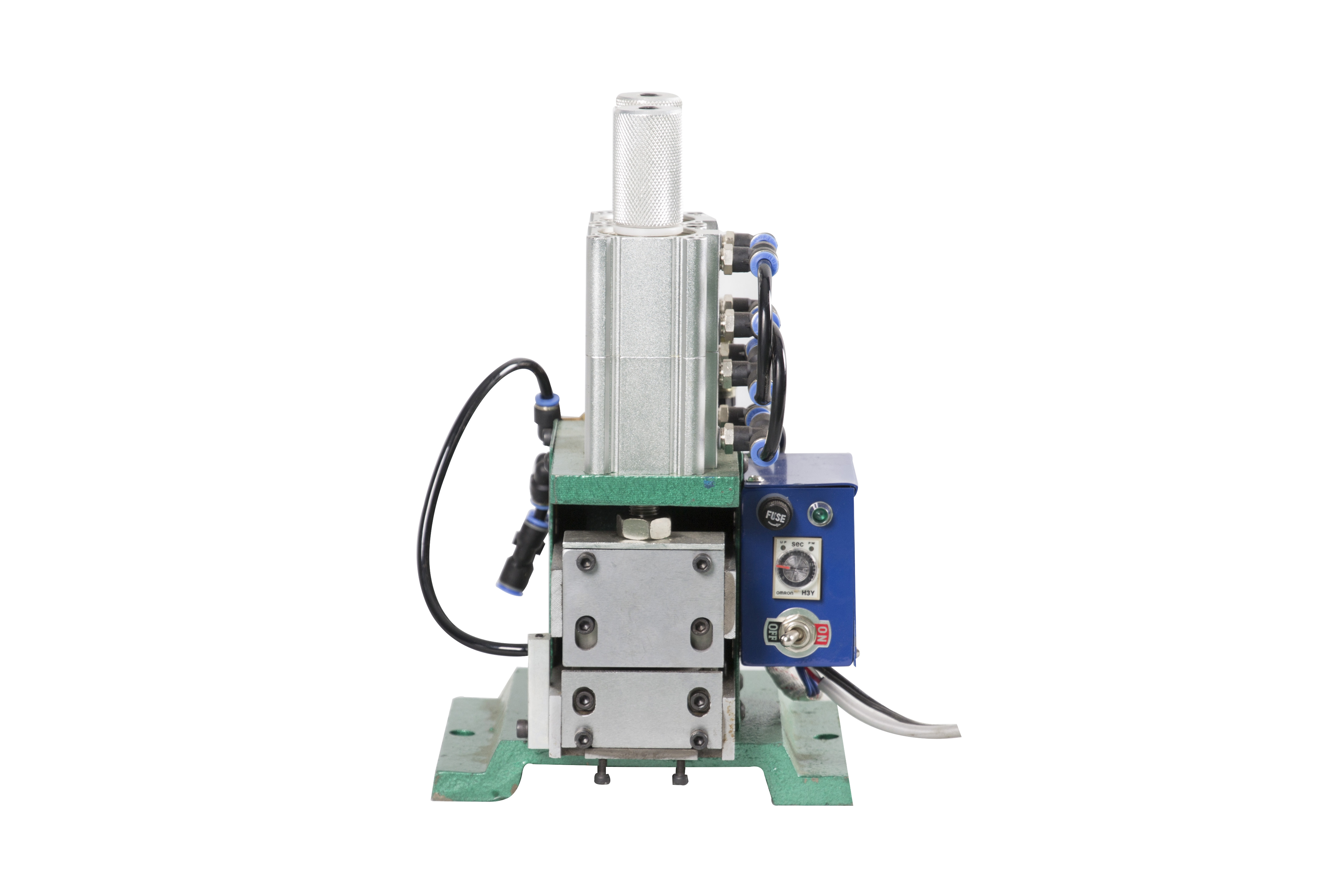 本機(jī)型主要針對目前線材行業(yè)中一些特殊線材之剝皮用,如電腦芯線、隔離線、電話線、排線等細(xì)線,適用線徑AWG#18-32,采用雙層倍力氣缸,力量大,可加工各類排線。